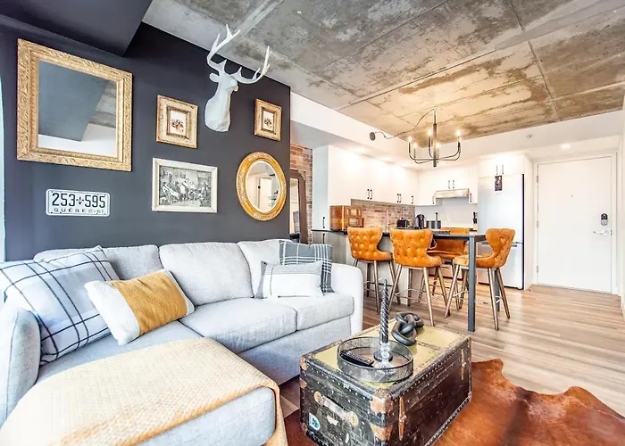 Lägenheten Rustic, Downtown Quebec, Rooftop Pool, 2 Bedrooms And 2 Bathrooms -Up To 6 Guests med 2 sovrum erbjuder närhet till J.A. Moisan Épicier, som ligger cirka 5 minuter bort till fots. Den här 64 m² stora lägenheten har också en terrass med utsikt över staden.